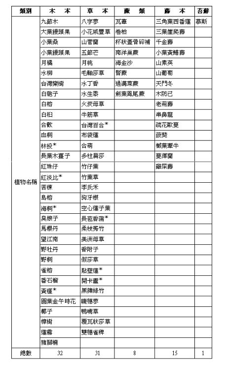 表1 烏石礁植被物種表:請查看附件
