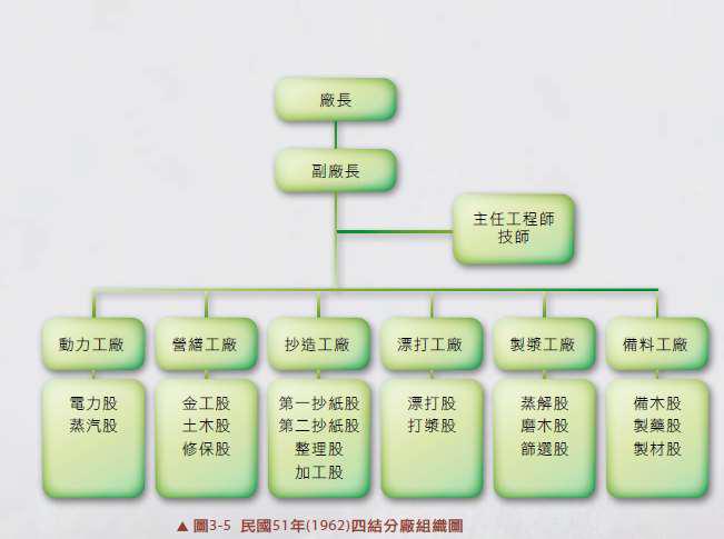 [10] 「公司組織規程及編制表」,《臺灣中興紙業公司檔案》檔號:0051/711-1/1/001/005,民國51年1月30日。(資料來源:戴寶村,《紙菁風華─臺灣產業經濟檔案數位典藏專題選輯─臺灣中興紙業公司,2008,頁50至51)。