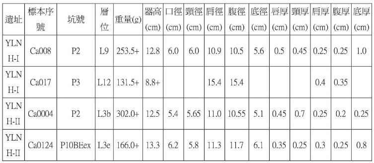 前後挑選碳樣7件送測定,挑選碳樣之位置及其測定結果如表7所示。其中序號1 的標本位處文化層下方70cm 處,測得年代僅供參考,而序號3 及序號7的標本分別採自灰坑現象II-H1 及II-H8,測得年代為現代,經查係因埋藏過程分別受到現代及近代的擾動所致,其餘測定年代分布在AD1334-1952 之間,並集中在AD1420-1795,據此推測遺址年代應該是西元十五到十八世紀間。