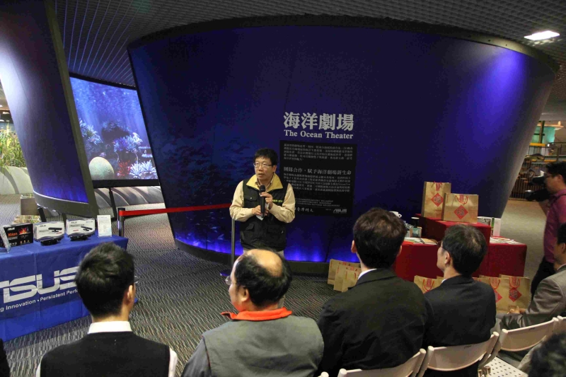 海洋劇場除了3D動畫及互動程式外,亦結合華碩硬體設備支援,導入華碩擁有極致效能的ESC500 G2工作站,支援海洋劇場長時間運作的穩定性;再加上華碩Xtion PRO體感偵測器,讓民眾可以透過先進的體感偵測應用,悠游於虛擬深海世界,與臺灣海域生態有更深入的互動和接觸,科技、生態與人文於此跨界結合。