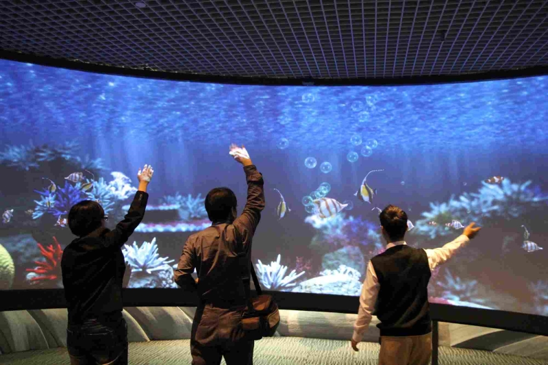 全新的海洋劇場以3D動畫模擬淺海珊瑚礁環境以及深海魚群,讓遊客在劇場中體驗可愛、逗趣的水族生態;簡單的互動效果,讓遊客在體驗數位體感的遊戲中,跟水族們產生互動,從互動中和海底世界培養更深的感情。在蘭博、臺科大與華碩的通力合作下,互動海底劇場擁有堅強的硬體設備、軟性創意以及技術實力,為產官學三方合作,再創成功典範。這樣的合作模式,可作為博物館及相關文化機構的參考範例。
