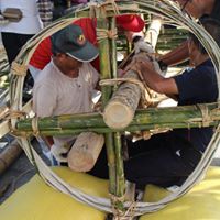今天的飯棧製作階段最主要是加強固定中間的支撐力,耆老們在動作時,動作必須是一致的,以避免鬆緊不一,他們在竹子尾端開個小口以便固定在做好的圓箍上。固定用的藤,利用木棍使力絞緊加以固定;聽完小編的講解不知大家是否清楚呢??肯定不夠清楚吧!!所以快來參加吧!!