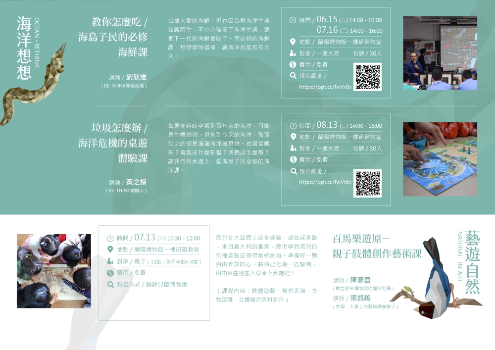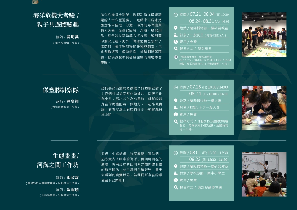 還未報名的朋友,歡迎參考參加【生態想想特展-生態教育推廣系列活動】其他活動喔!