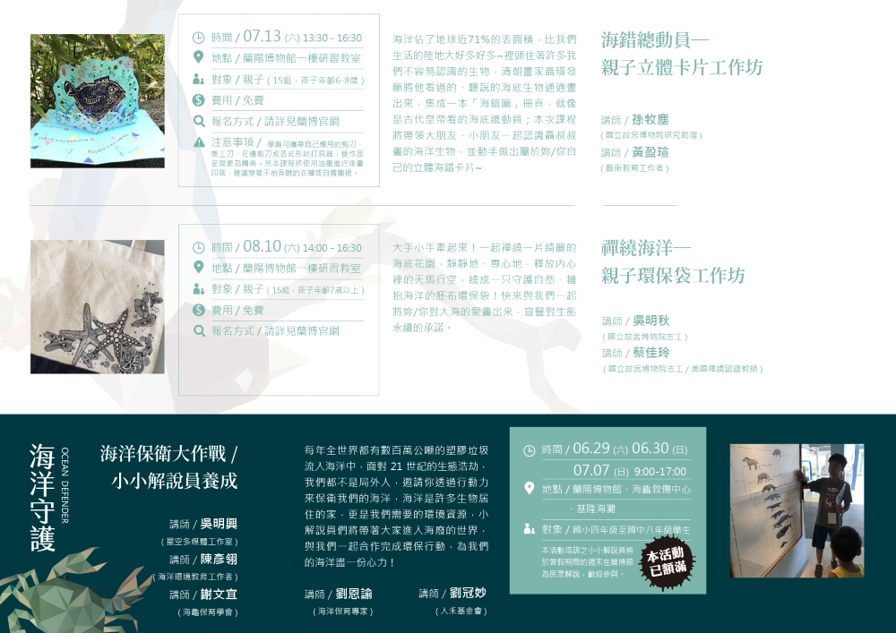- 生態想想---【藝遊自然】禪繞海洋─親子環保袋工作坊、「海錯總動員—親子立體卡片工作坊」活動報名已額滿!