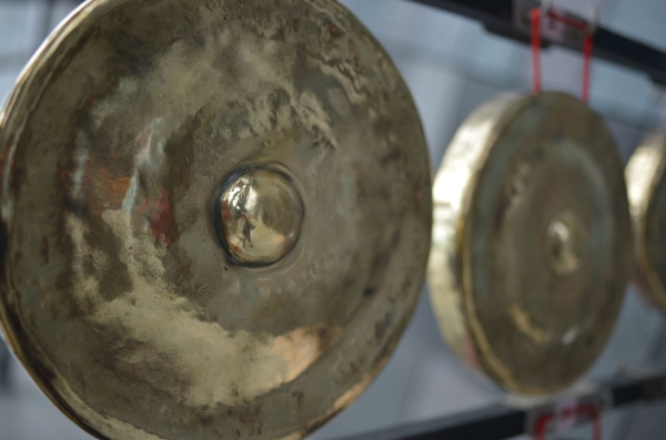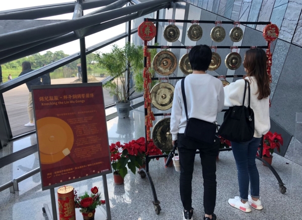 蘭陽博物館配合新年,特別展出林午鐵工廠出品的大小鑼以及各種製鑼工具,讓大家認識生活中不同的鑼,也了解銅鑼的製作過程。其中最特別的是展出了一組16音階的音樂銅鑼,讓觀眾可以敲擊出優美的曲子。