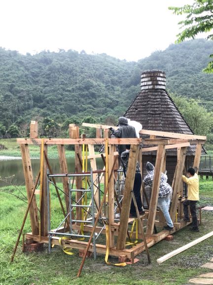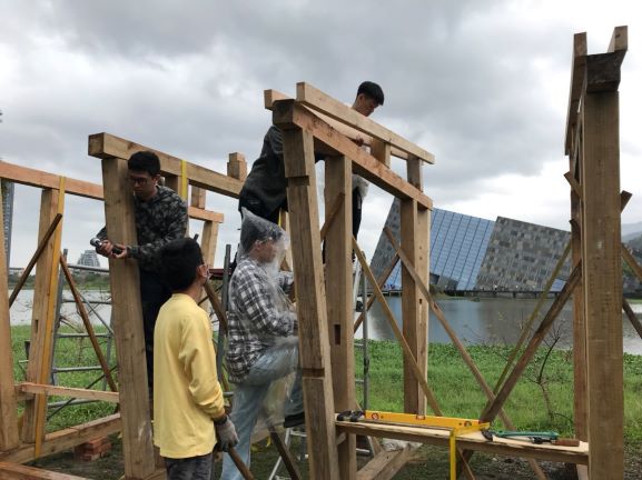 ※本活動配合「2020蘭陽洋構築展」,續築汗得傳藝小屋工事,3/11-3/14 完成了地基與主要結構體的,4/25 由台灣屋瓦匠師 王榮貴老師帶領屋瓦鋪設。