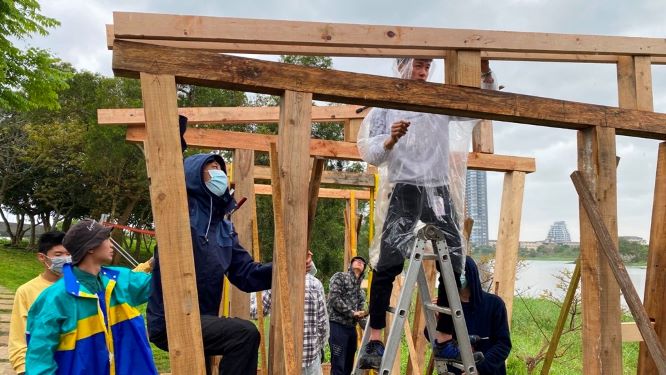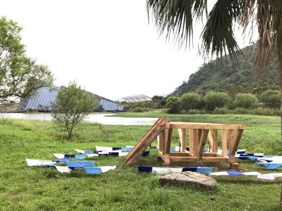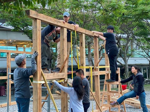 本次展期逢植樹節,展覽利用在地的自然素材,汗得學生以擅長的大型木作為主,結合當地的歷史進程及自然特色,以創意構築的形式反饋土地,強化參觀者與土地、自然的連結。