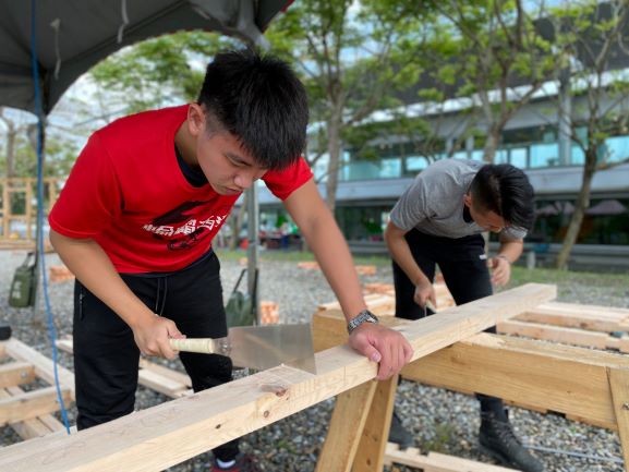完全由同學自己發想、設計與完成的木構造,是同學對自己的挑戰,也是願意全身投入的任務。汗得以建築為主題的教育方式,以任務為導向的課程設計,培養高中生成為獨立自主,在社會上能夠與人和諧相處與共同合作的年輕人。