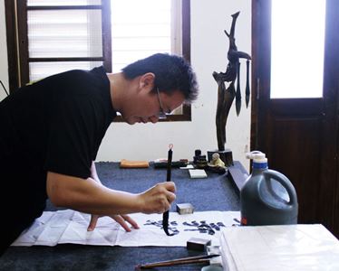 名書法家康懷老師,字虛谷,號自在,出生於頭城書法世家。幼承庭訓勤習各體,承續家業書法,擅長書法與雕刻藝術創作。其作品曾獲得國內外諸多獎項肯定:1985年起數次榮獲大日本書藝院文化交流展準特選賞,1988年起連續6年於台北市中山堂展出,1990年獲邀第五屆中韓美術交流展。