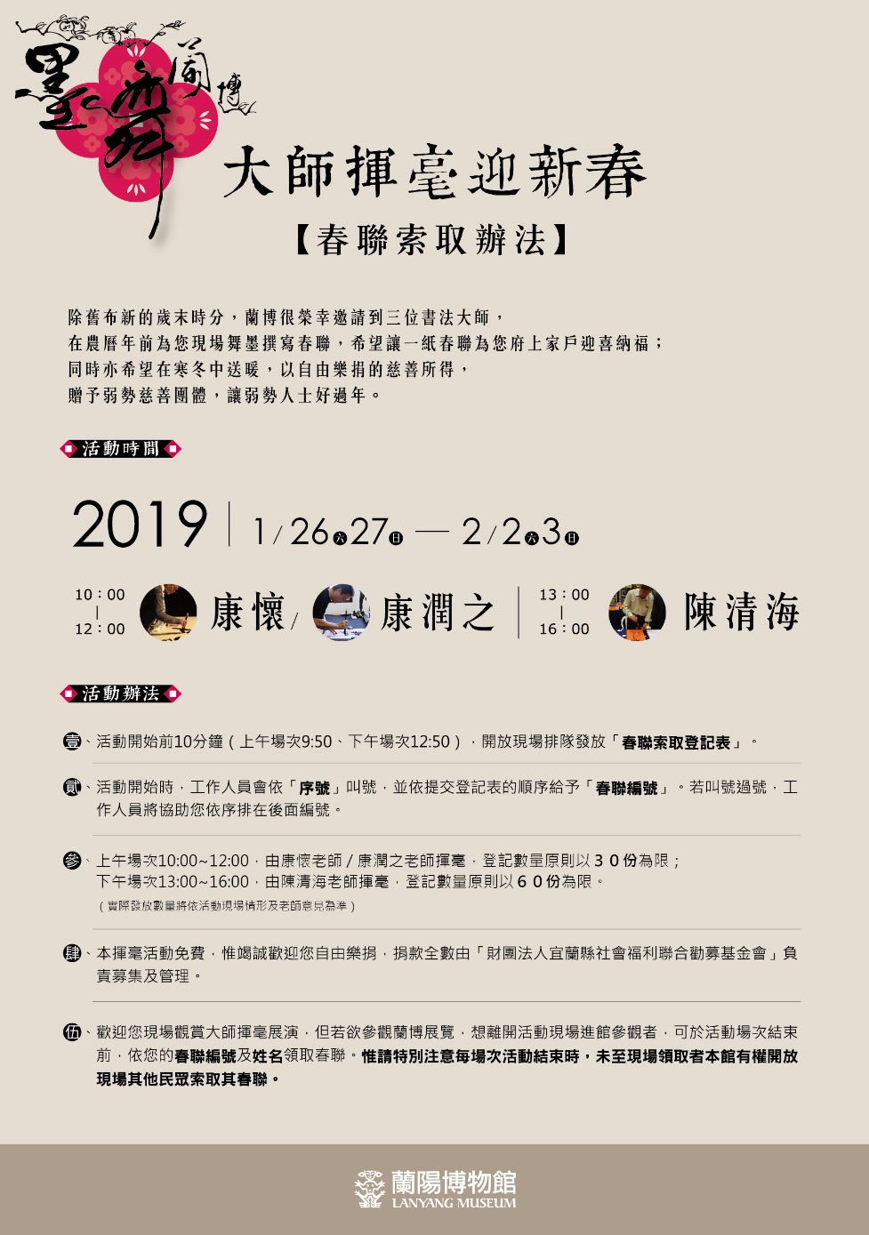蘭博連續幾年在歲末辦理的「墨舞蘭博-大師揮毫迎新春活動」,充滿節慶歡欣、墨香滿盈,更是冬季寒流中不可錯過的一股暖流!